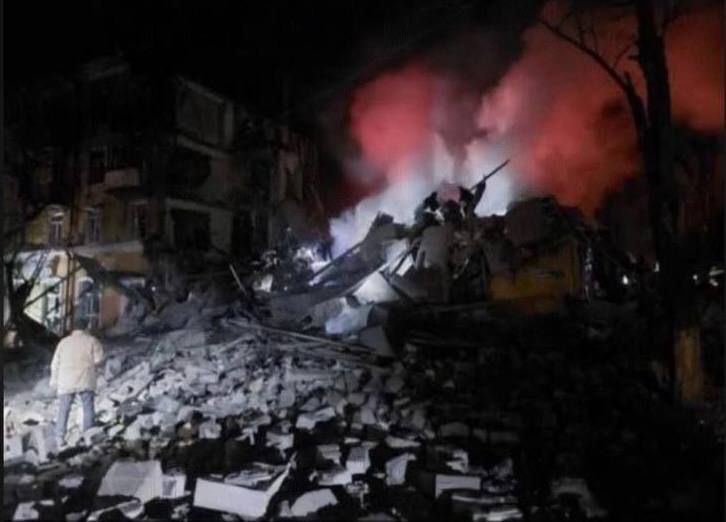 Два часа назад (около 21:30 1 февраля – 24 Канал) российские оккупанты ударили ракетой по жилому дому, расположенному в центре города, и полностью его разрушили,