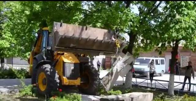 Местные СМИ сообщают, что российские захватчики снесли его из-за того, что на открытии памятника были бойцы полка "Азов".