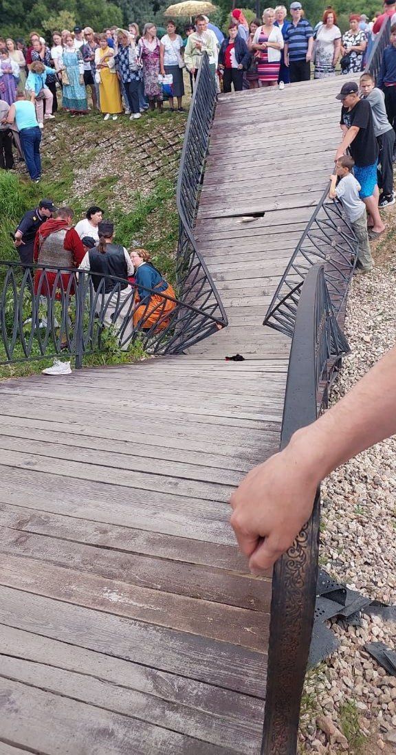 В российском городе Луга Ленинградской области проходил фестиваль "Берега Ольги". Во время его проведения обрушился мост. Это произошло тогда, когда россияне вышли встречать лодию с Ольгой.