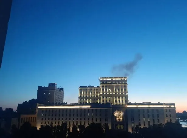 Минобороны России, позади которого заметно дым / Телеграм-канал государства-агрессора