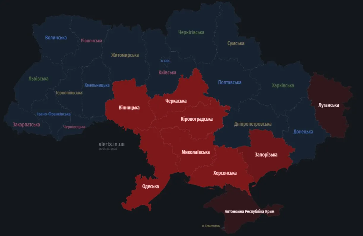 Воздушные силы предупредили: "Винницкая, Черкасская, Кировоградская, Одесская, Николаевская, Херсонская, Днепропетровская, Запорожская области – угроза применения баллистического вооружения!"