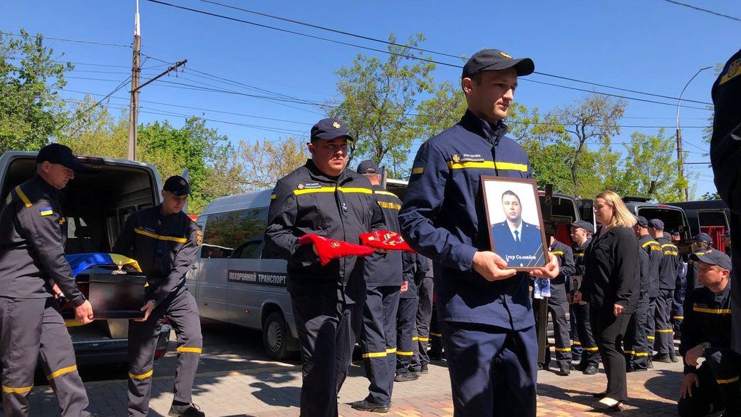 Уже 12 мая в Николаеве погибших спасателей провели в последний путь. На церемонию прощания пришли пол тысячи человек.