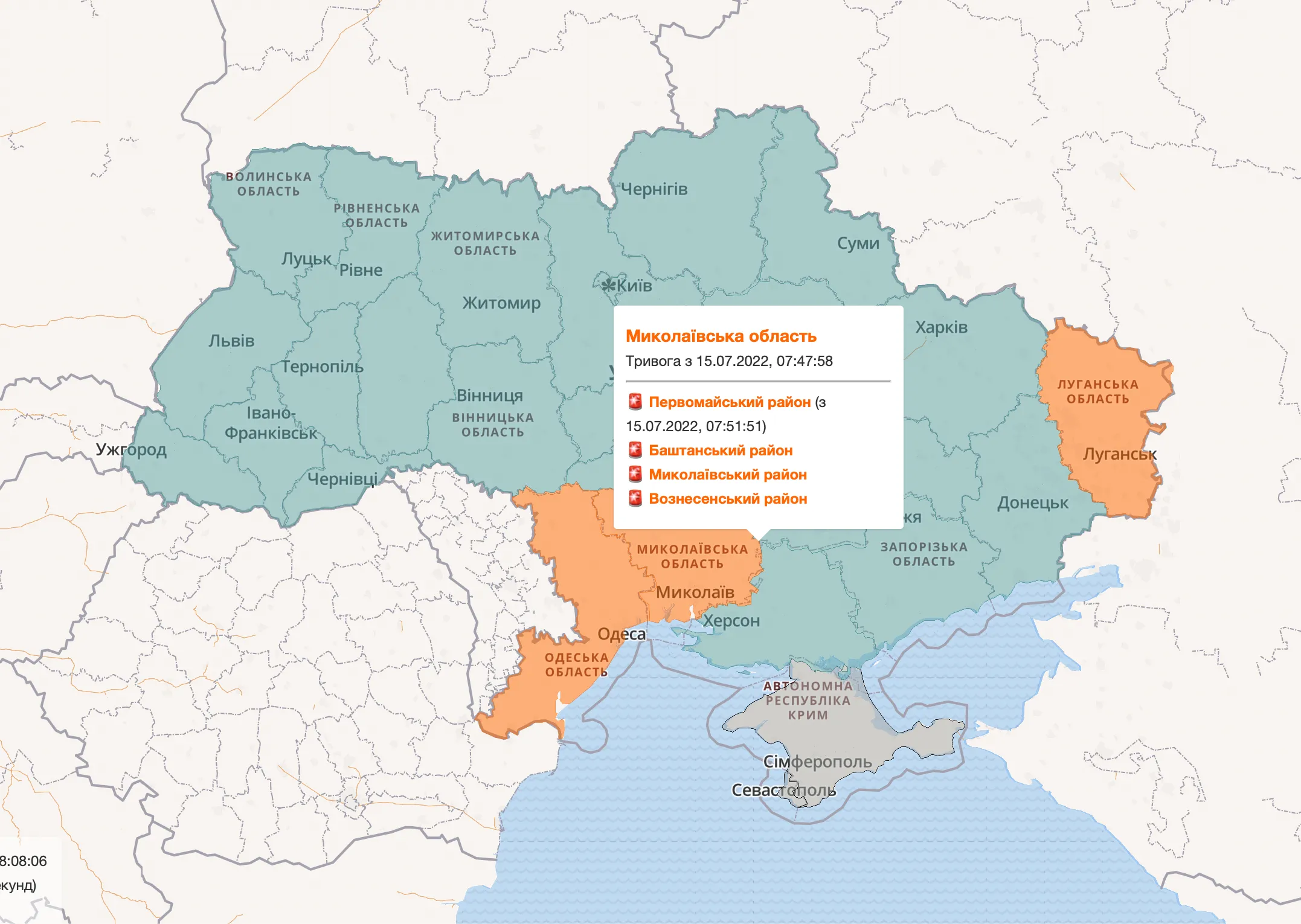 Воздушные тревоги раздаются в Одесской и Николаевской областях / Скриншот vadimklimenko