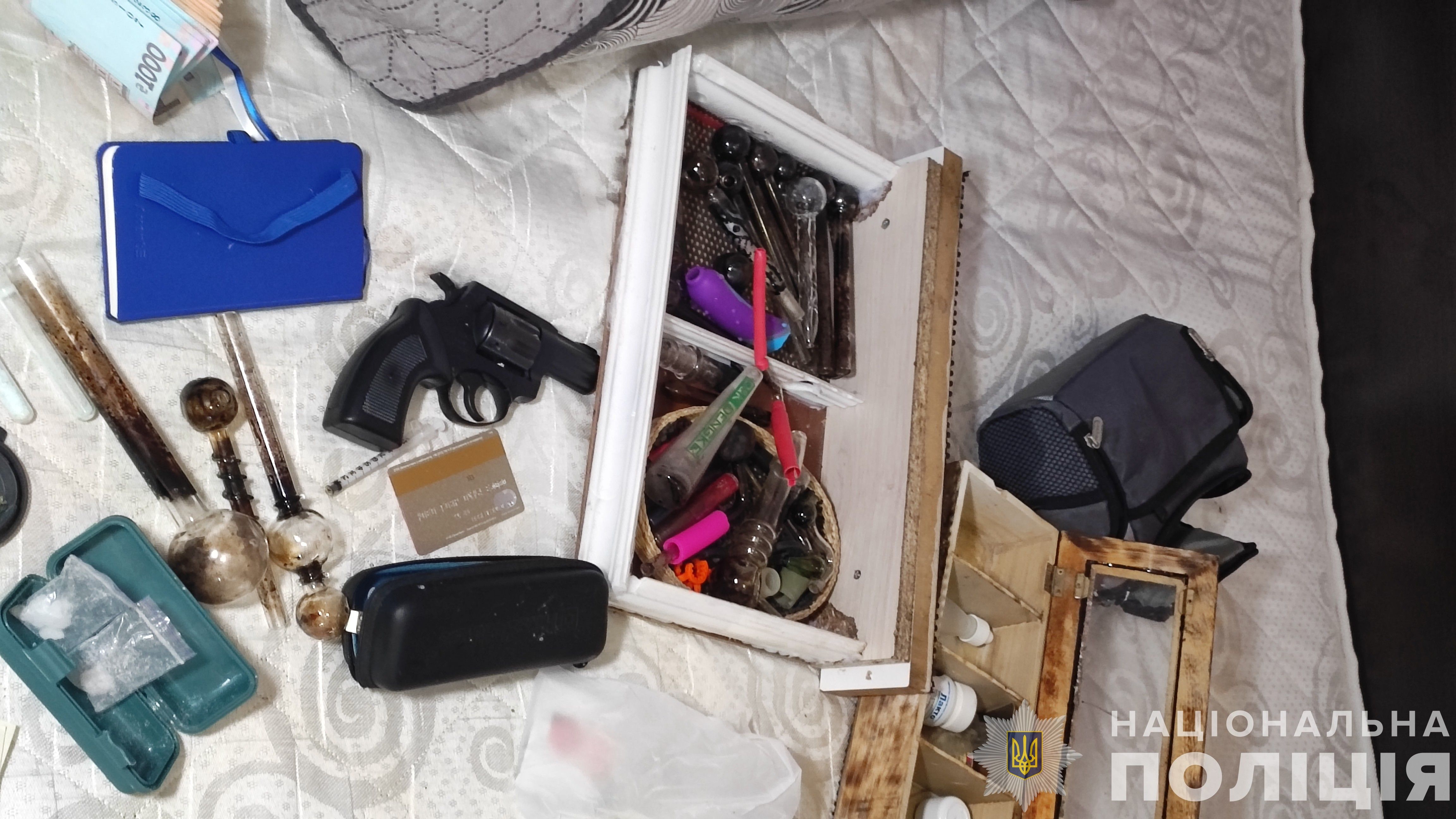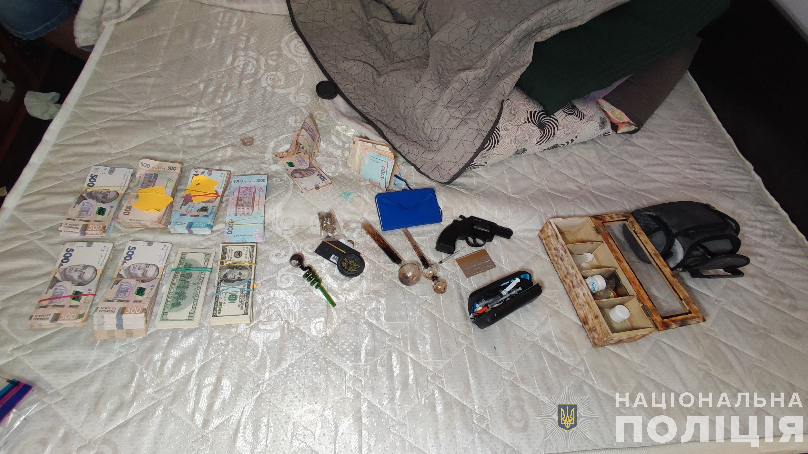 Во время обыска у подозреваемых изъяли компьютерную технику и мобильные телефоны с доказательствами совершенных преступлений, а также элитные авто фигурантов и более 100 тысяч долларов в разной валюте. Кроме этого, на фото можно увидеть наркотические вещества.