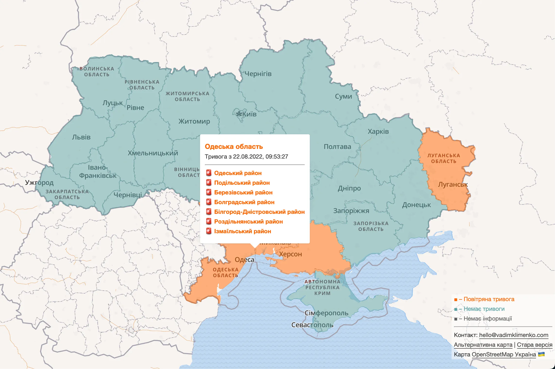 Заметим, что через считанные минуты после отбоя, сирены раздались снова. Но на этот раз "покраснел" не только Юг, но и ряд других областей Украины. Так что не игнорируйте, пожалуйста, оповещение о воздушной тревоге. Сразу же отправляйтесь в укрытие и пребывайте там до тех пор, пока не будет сигнала об отбое. Это может спасти вам жизнь.