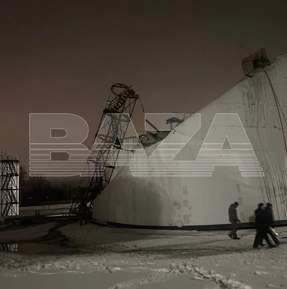В результате падения БпЛА вроде бы вспыхнул пожар. Впоследствии в сети опубликовали фото поврежденного резервуара с топливом.
