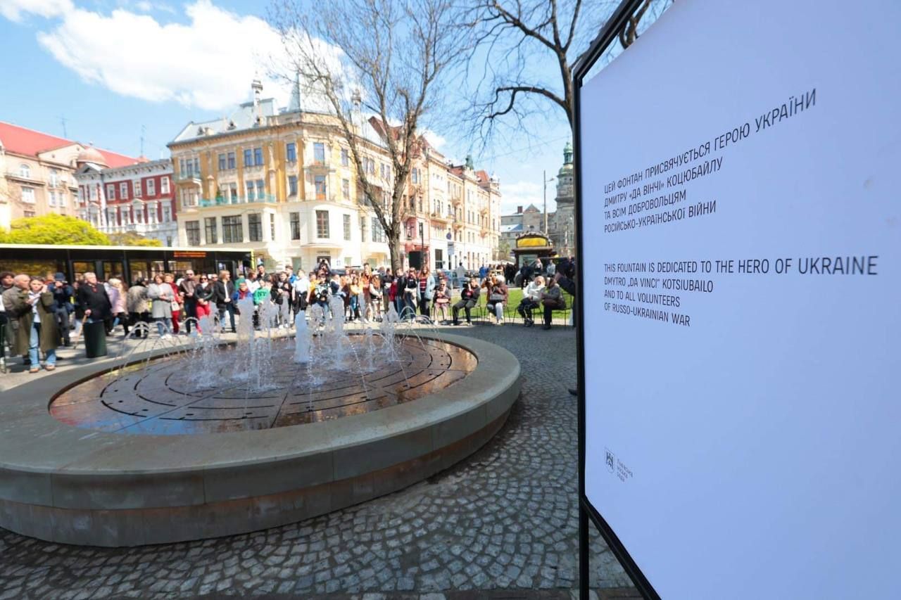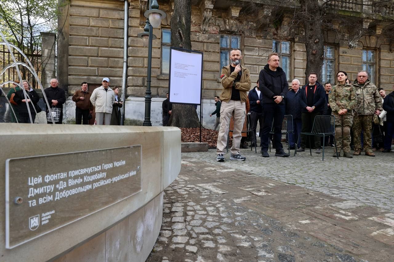 Во Львове открыли фонтан, посвященный Дмитрию "Да Винчи" Коцюбайлу / Фото из телеграм-каналов Андрея Садового и Максима Козицкого