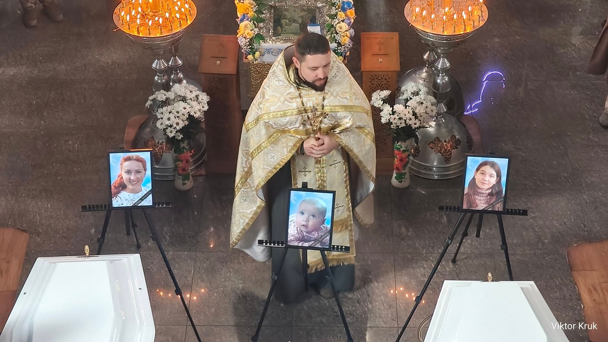 Село прощается с тремя девушками: Зайченко Антонина Владимировна (1987 года рождения), ее маленькая дочь Негода Аделина Ярославовна, которой было всего 6 месяцев и 10 дней, и племянница Негода Анастасия Романовна, 12-летняя ученица Погребского лицея, жертвами российской агрессии, которые погибли в собственном доме в результате попадания российского дрона,