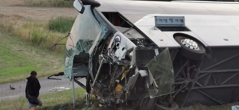 В результате столкновения автобус перевернулся / Фото TVN24