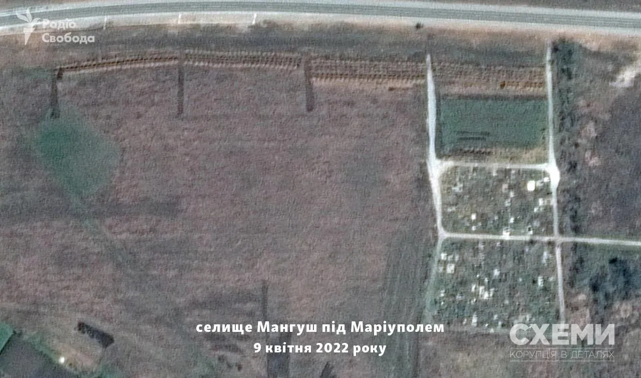 На это указывает сравнение со спутниковыми фото места массовых захоронений в Буче, где было обнаружено 70 тел. Но на снимках Maxar от 9 апреля сектор массовых захоронений в Мангуше в 20 раз больше.