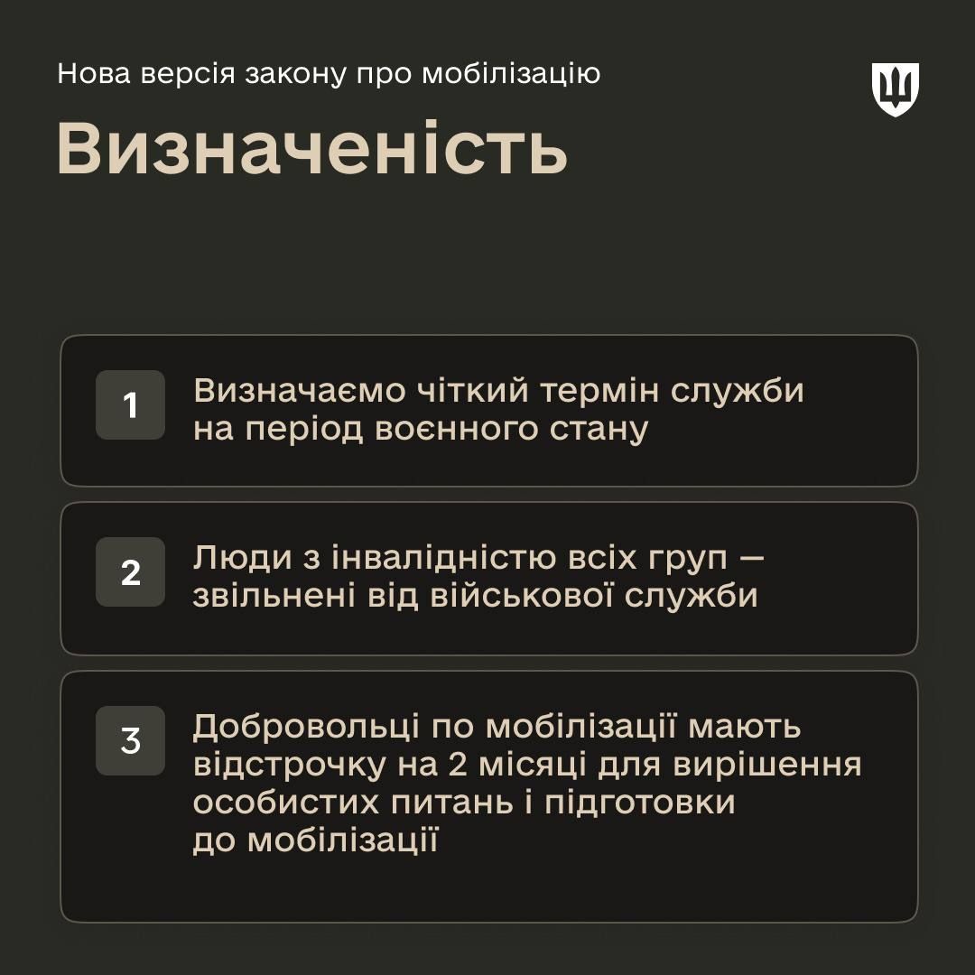 - На период военного положения определен четкий период службы, а люди с инвалидностью всех групп освобождены от военной службы.