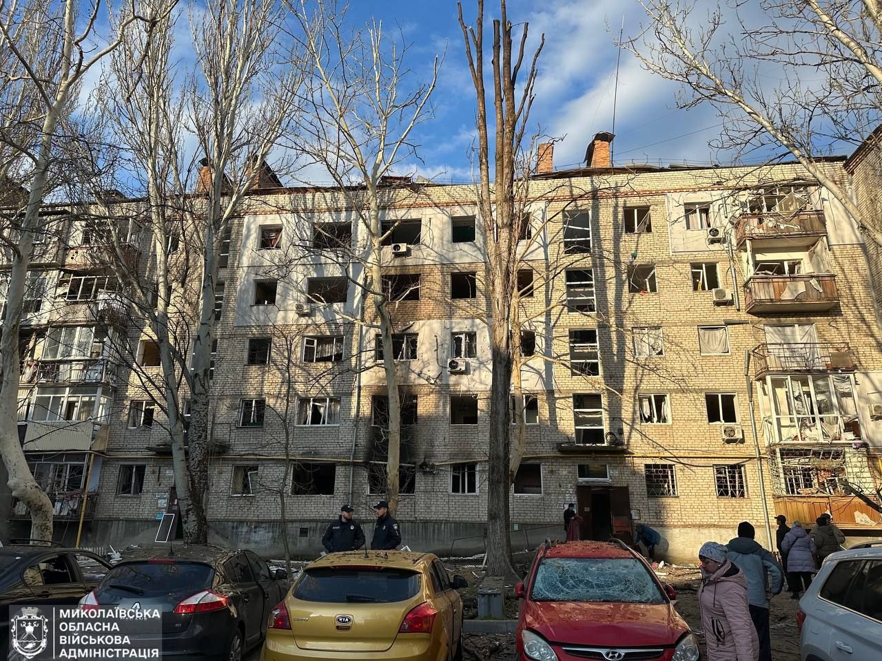 Около 02:45 враг агрессор атаковал Николаев беспилотниками типа Shahed 131/136. В результате падения обломков и действия взрывной волны повреждены 9 многоквартирных домов, 3 автомобиля, 30 гаражей, а также административное здание.