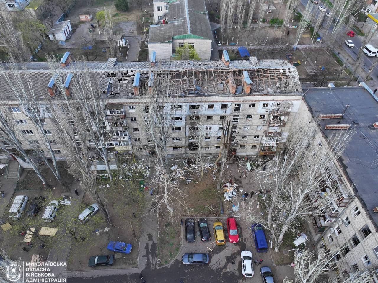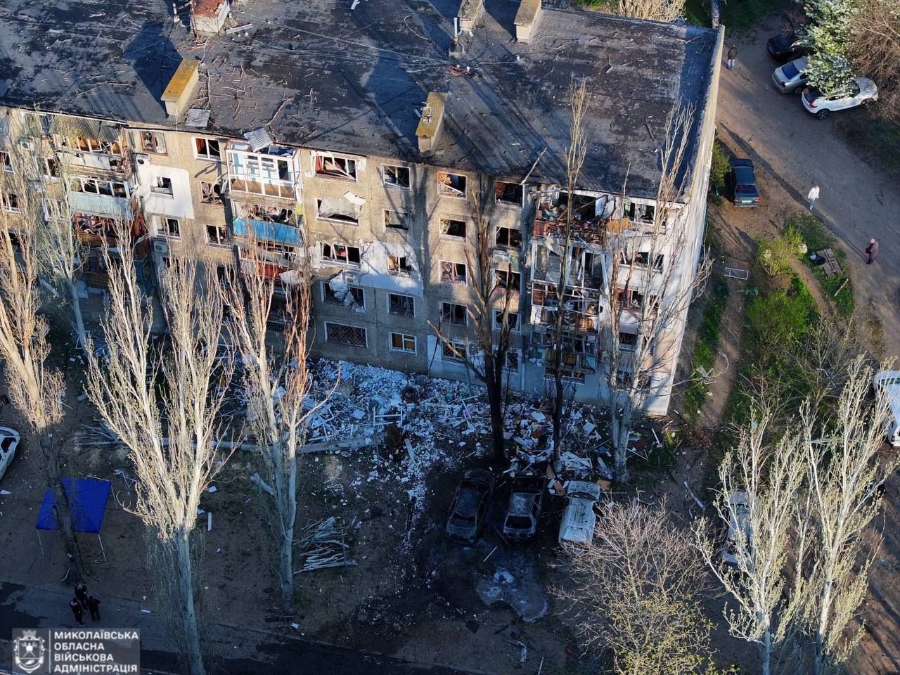 Последствия атаки "Шахедами" на Николаев 10 апреля / Фото ОВА и ГСЧС