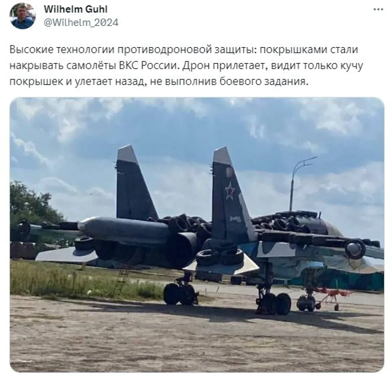 Сначала автомобильные шины были замечены на стратегической бомбардировочной авиации, но впоследствии этот тренд распространился на все российские ПКС. Такого тренда не заценили россияне, в сети уже активно высмеивают такие способы "обезопасить" самолеты от ударов.