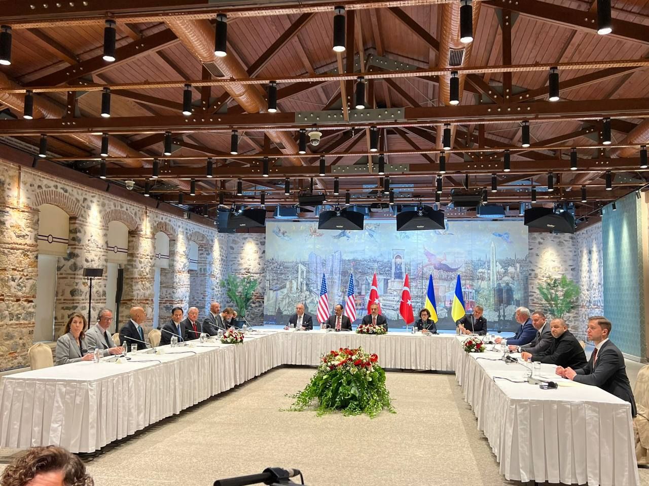 Как сообщает журналистка 24 Канала Андриана Кучер, в 12:06 завершилась встреча делегаций Украины, США и Турции. Американская и турецкая делегации покинули дворец Долмабахчи.