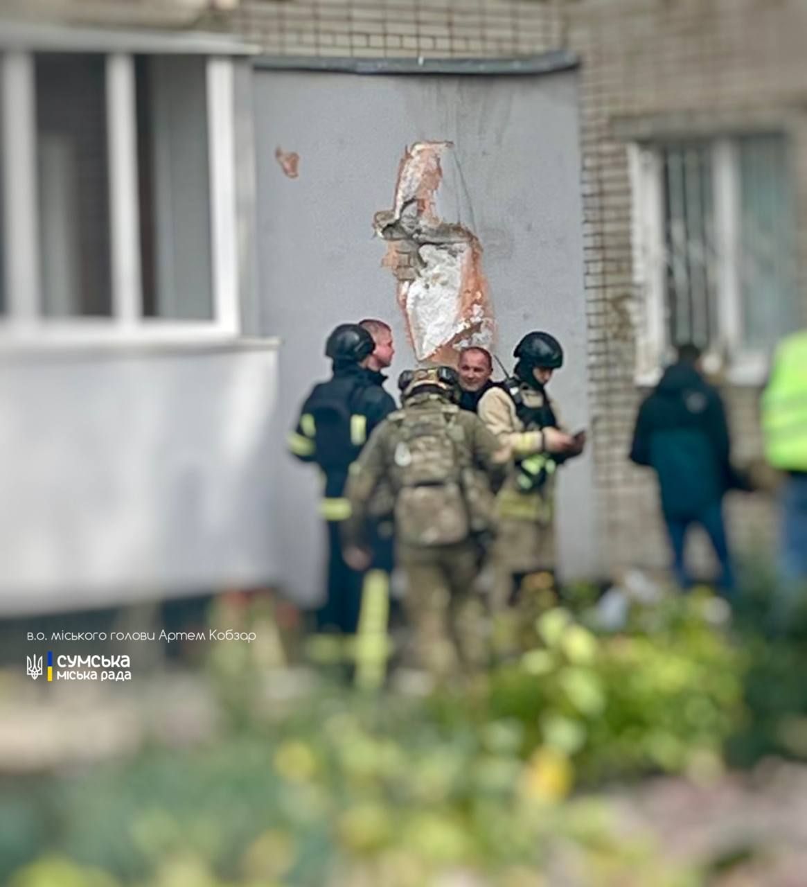 Впоследствии исполняющий обязанности городского головы Сум Артем Кобзарь написал, что в городе зафиксировано вражеский прилет по одному из многоквартирных жилых домов.