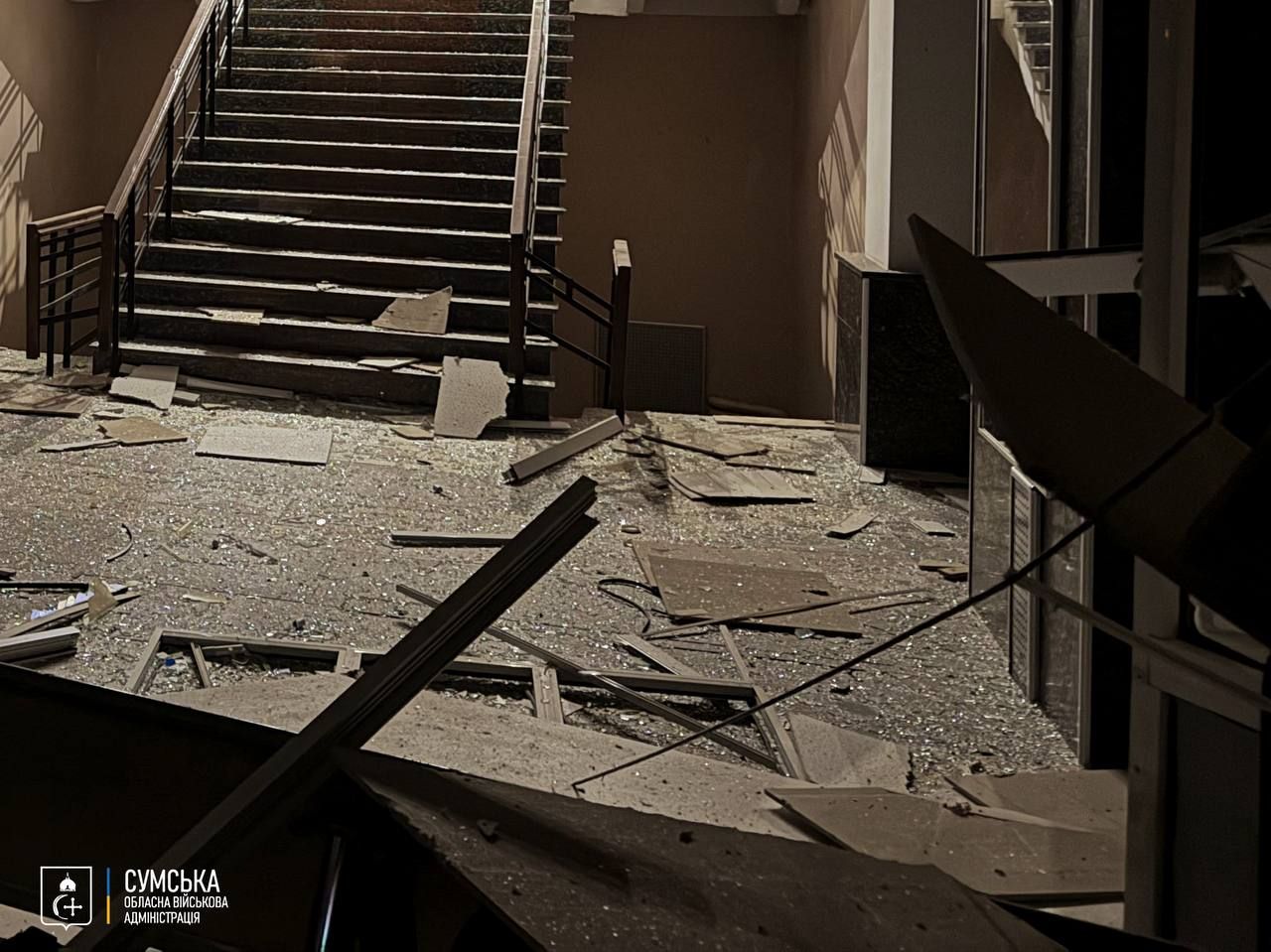 Обновлено: глава Сумской ОГА Олег Григоров рассказал, что жертв и раненых в результате атаки нет. Было повреждено здание одного из учебных заведений. Взрывная волна поразила фасады, выбила окна и двери. Сейчас продолжается обследование территории.