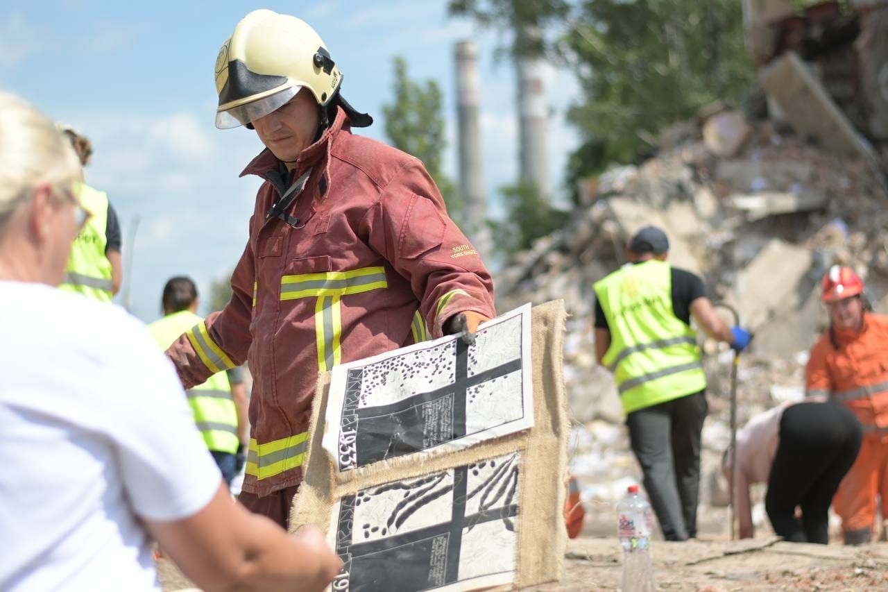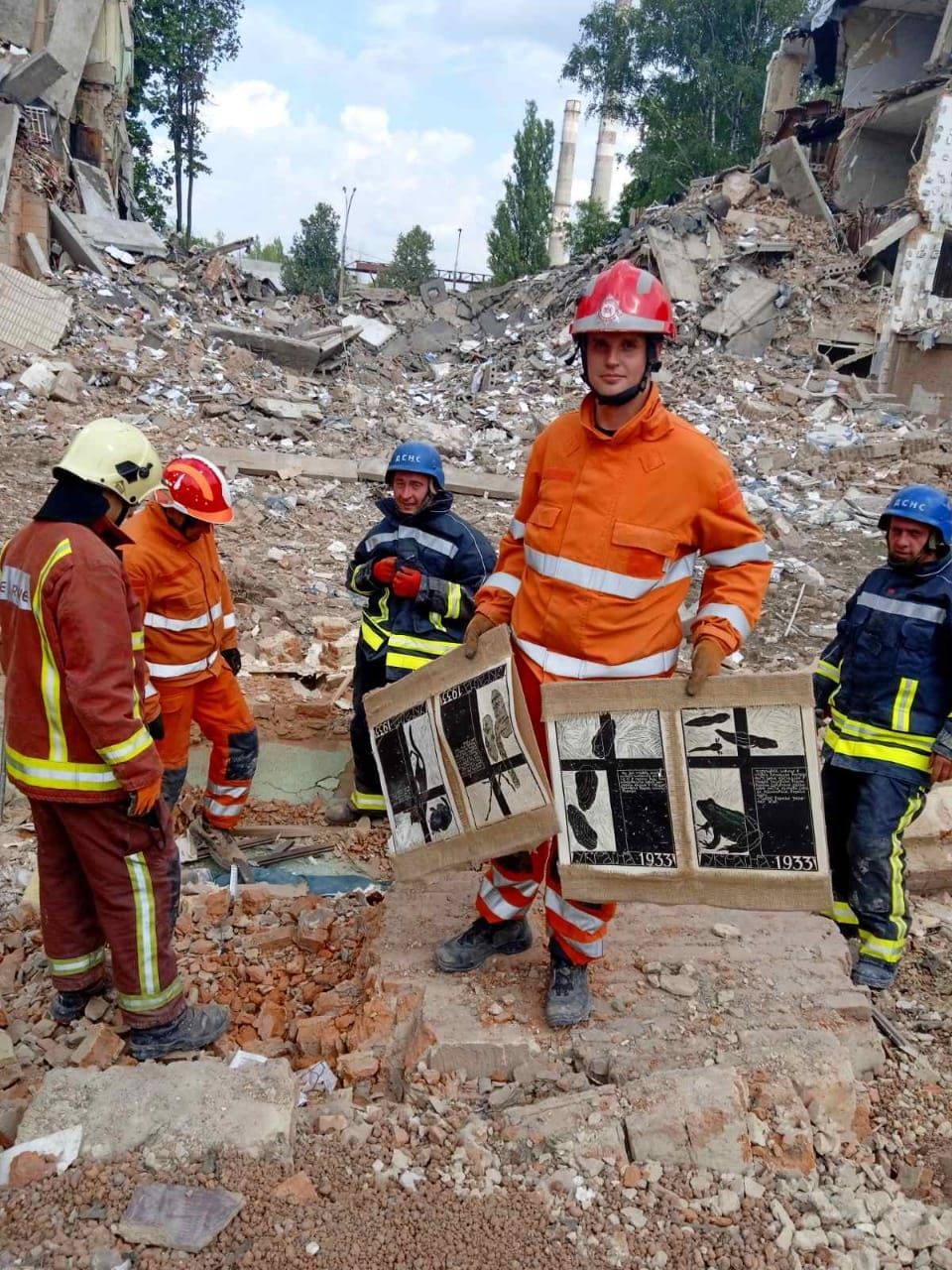 Уникальные линориты, посвященные Голодомору, доставали из-под завалов / Фото Сумской ОВА