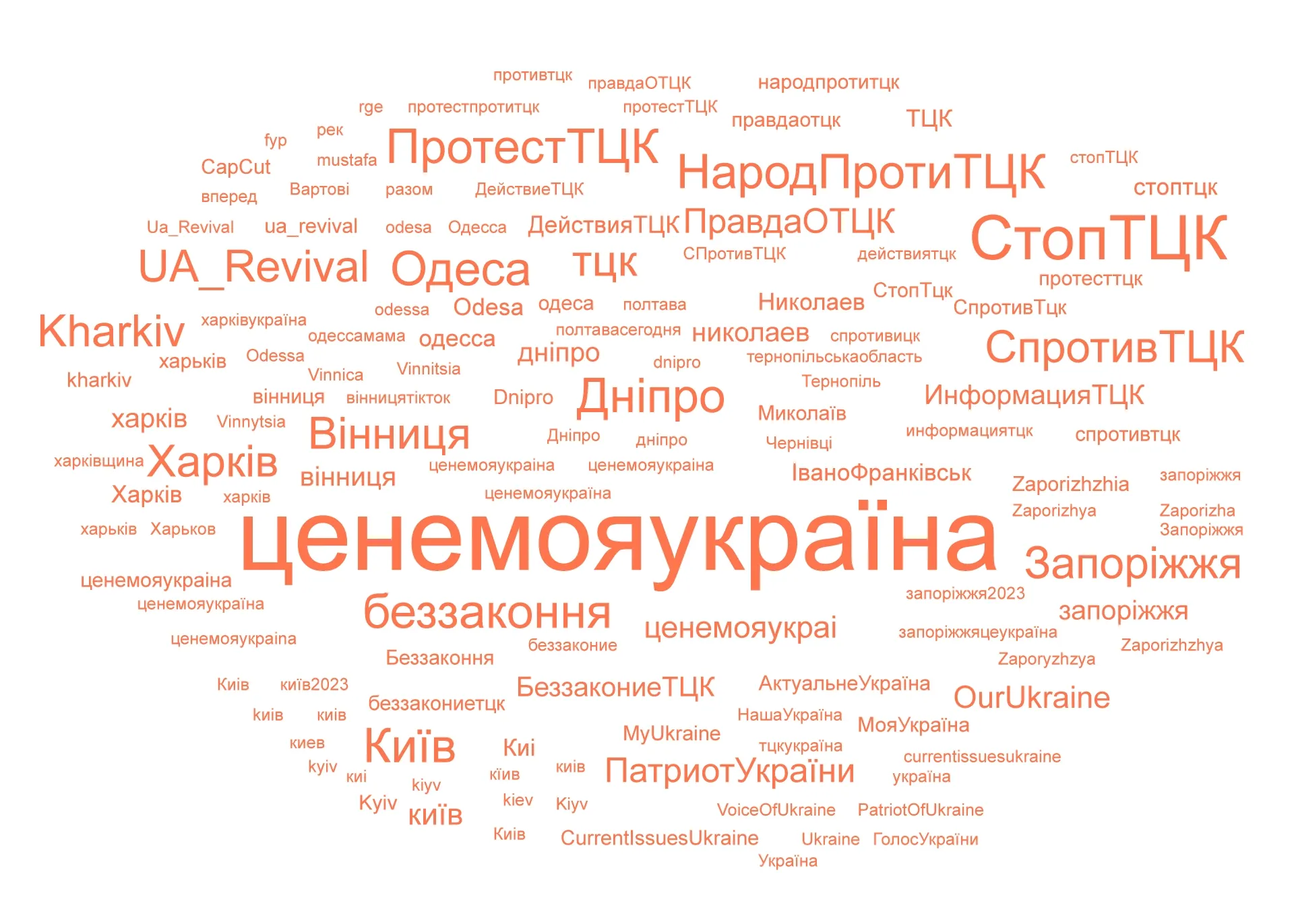Впоследствии в этих аккаунтах появляется контент и хэштеги с названиями населенных пунктов или популярные вроде #тцк, #НародПротиТЦК, #беззаконня, #ПротестТЦК, которые, к слову, могут быть написаны с ошибками.