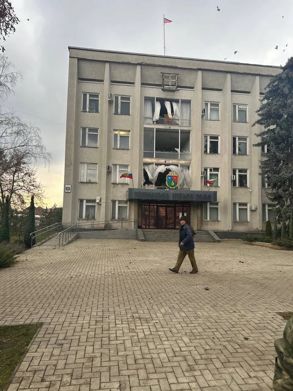 Впоследствии российские захватчики сами показали последствия прилетов. Прилетело в мэрию – теперь, к сожалению, это главное логово оккупантов и коллаборантов.