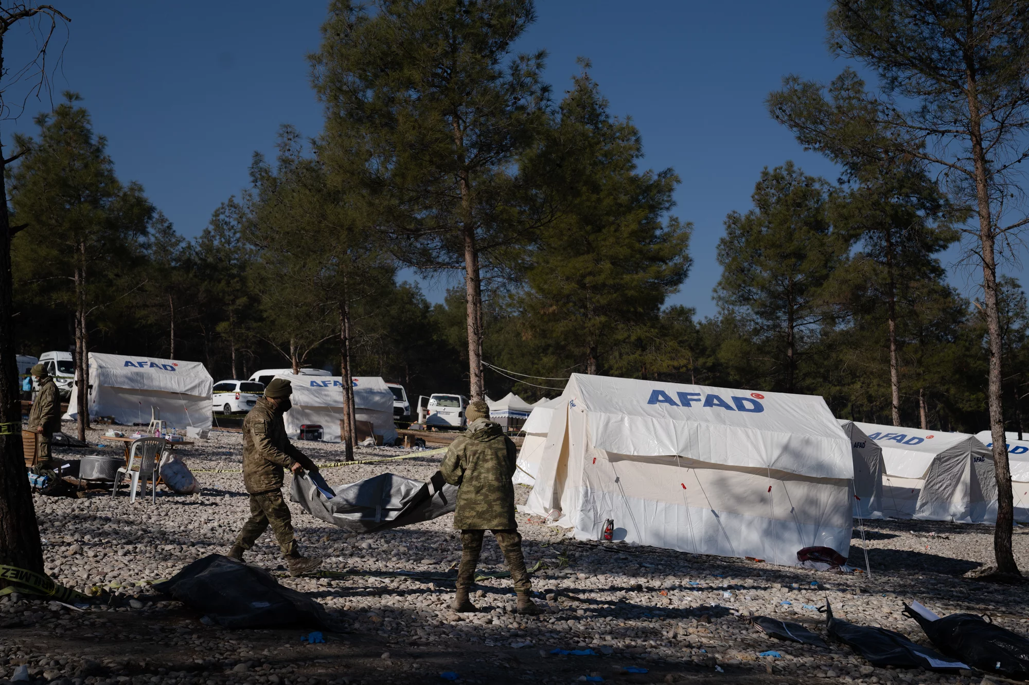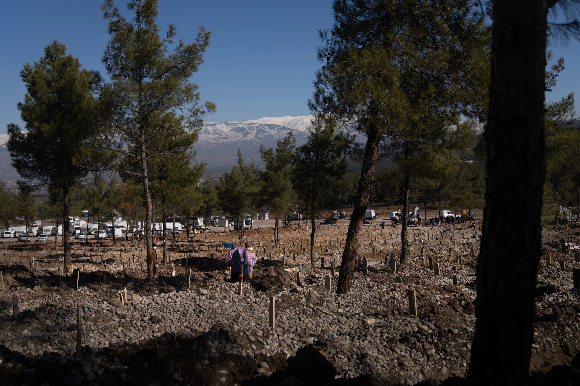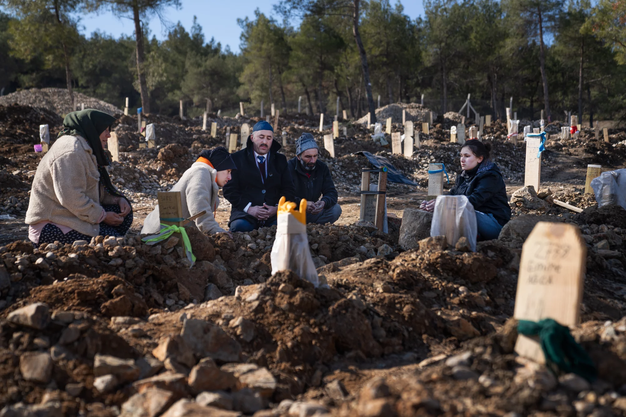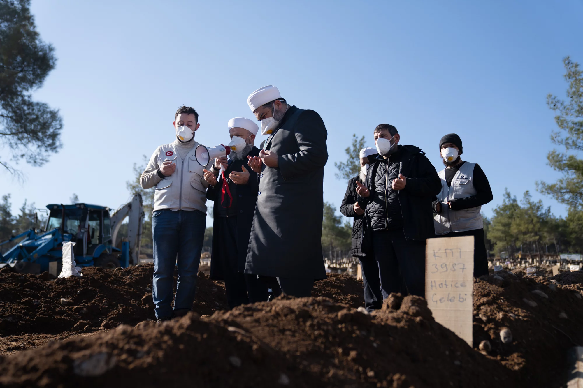 На вершине холма, у братской могилы, установили 19 палаток для мытья тел. Этот обычай проводит группа женщин, приехавших помогать со всей Турции.