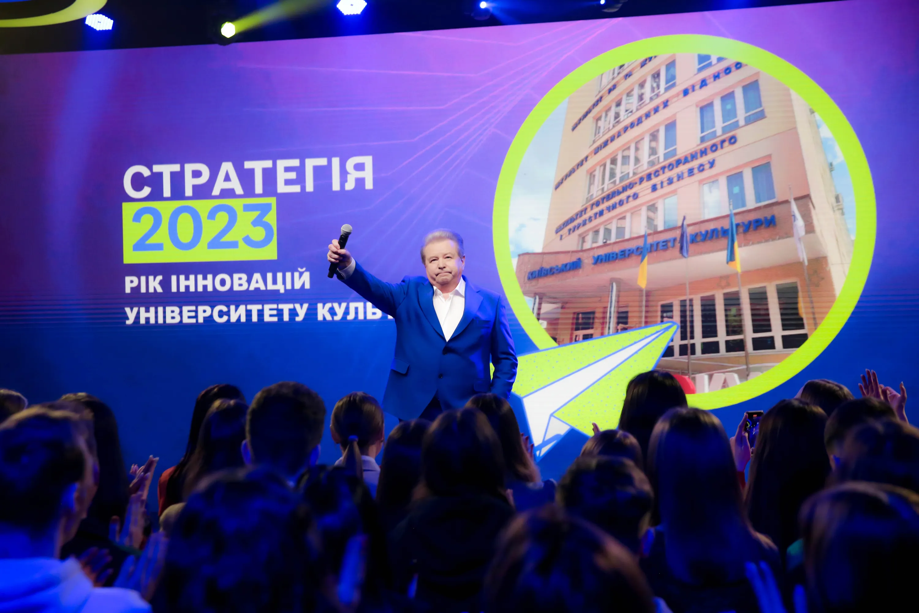 2023 год ректор ЗВО провозгласил Годом инноваций в университете культуры и презентовал присутствующим в зале стратегию развития с целями и действиями, среди которых: