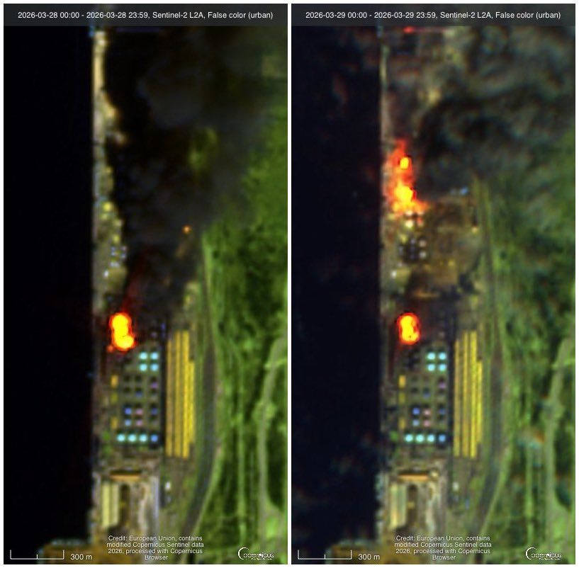 - После украинских атак в российском порту Усть-Луга зафиксированы новые очаги пожара, которые видны на спутниковых снимках.
