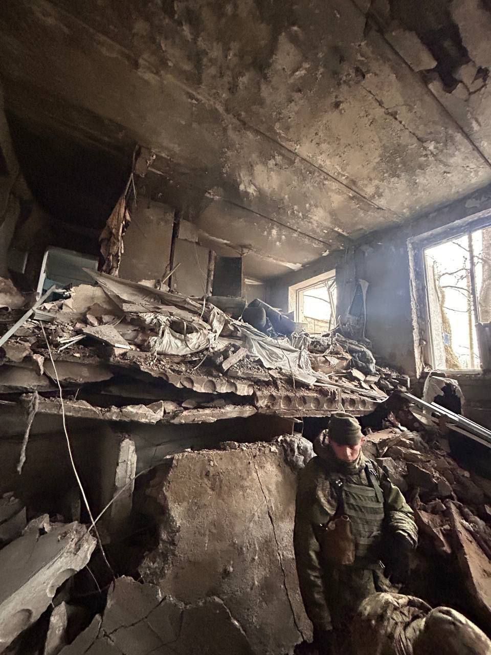 Партизаны также опубликовали видео изнутри здания, где враг обустроил пункт базирования. На одном из видео оккупант сквозь слезы рассказывает, где лежали его собратья. Однако сейчас там только руины.