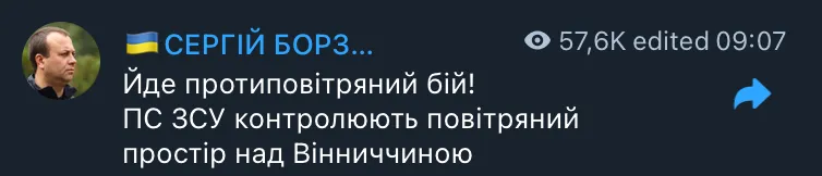 Борзов исправил сообщение по поводу воздушного сражения в Винницкой области / Скриншот