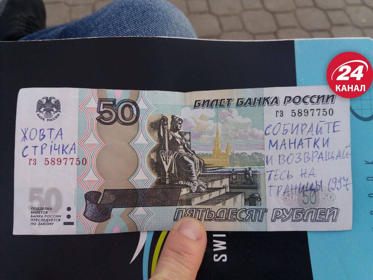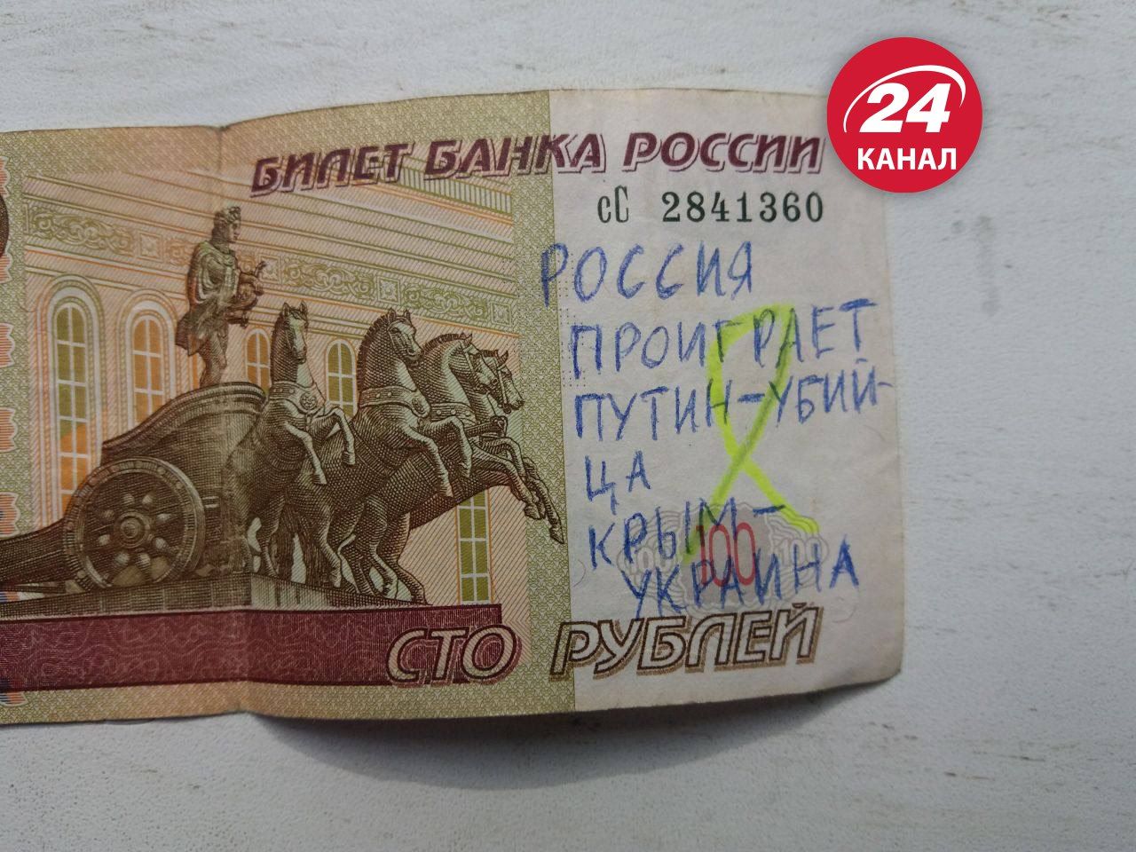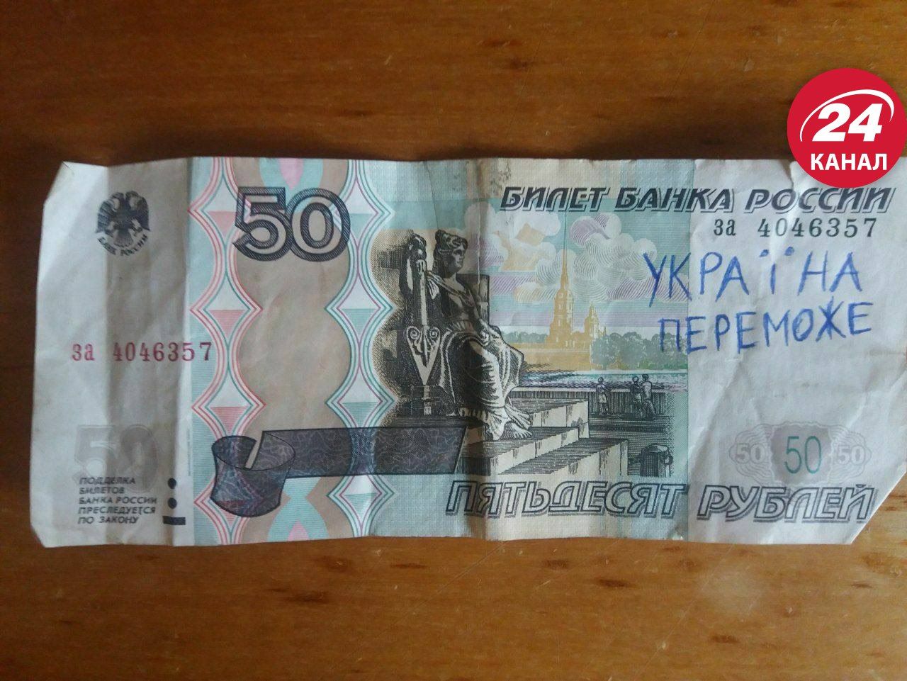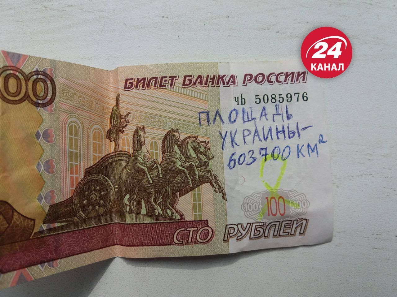 Оккупанты получают банкноты с посланием на Запорожье / Фото предоставлены 24 Каналу