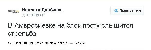 "В Амвросиевке на блокпосту слышна стрельба", - говорится в сообщении.