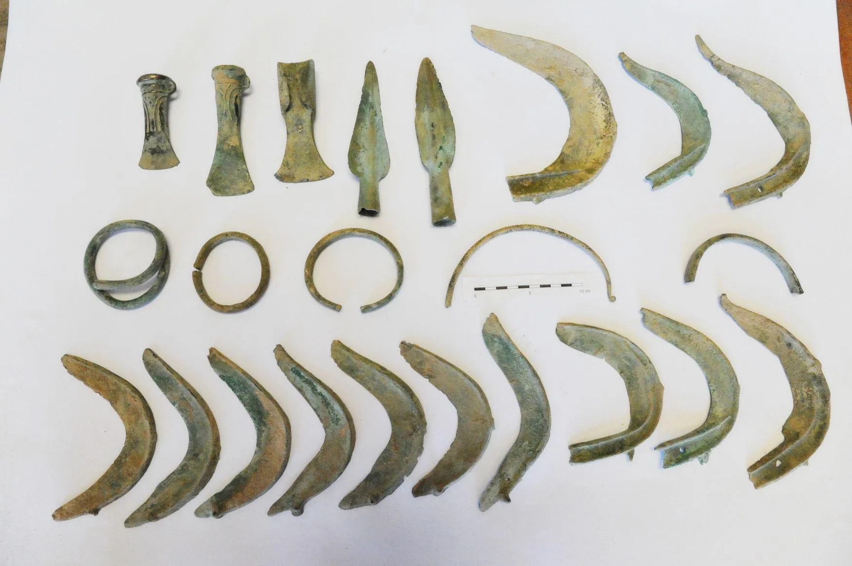 Житель села Костелецкие Горки в Чехии гулял с собакой вдоль одного из полей и услышал, как животное неожиданно начало рыть землю. Хозяин подошел посмотреть и увидел предметы, похожие на серпы, сделанные из бронзы. Таких предметов собака откопала 20 штук, 13 из них оказались серпами, два – бронзовыми наконечниками копий, а также три топора и несколько браслетов.