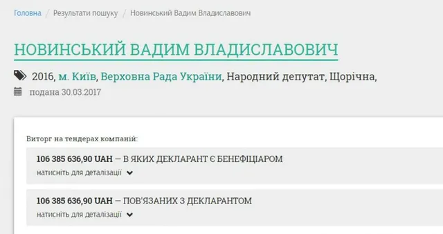 Информация о тендерных соглашениях компаний чиновника теперь доступна в его декларации на сайте "Декларации".