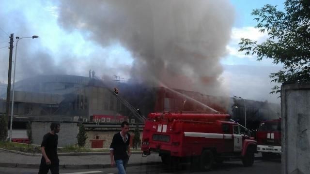 "В 4 ч. 49 мин. 27 мая в Донецке во дворце спорта "Дружба" возник пожар на площади около 300 кв. м (горит внутренняя отделка). К тушению пожара от Главного управления ГСЧС Украины в Донецкой области привлечены десять отделений на основной и специальной технике", - говорится в сообщении.