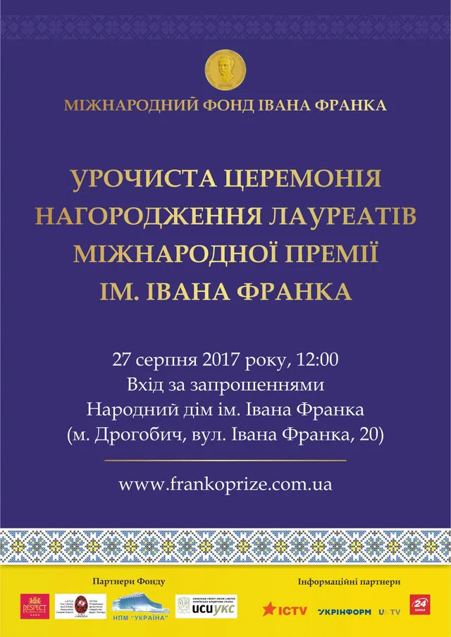 Представители СМИ могут аккредитоваться на церемонию награждения. Контакт для справок и аккредитации: Ольга Нижник (+38 066 711 12 84, presa.frankofund@ukr.net).