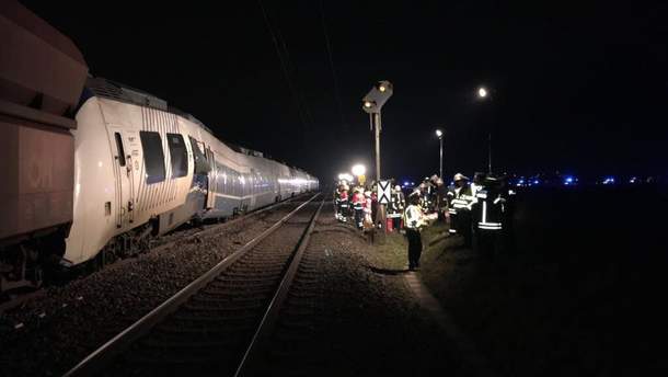Отмечается, что на место аварии приехали машины спасательных служб и полиция, они помогают выводить людей из поезда и оказывают им помощь.