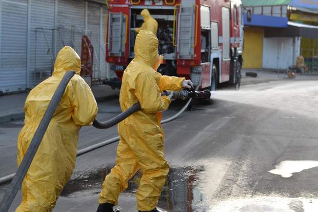 Дезинфекция вещевого рынка в Хмельницком / Фото ГСЧС