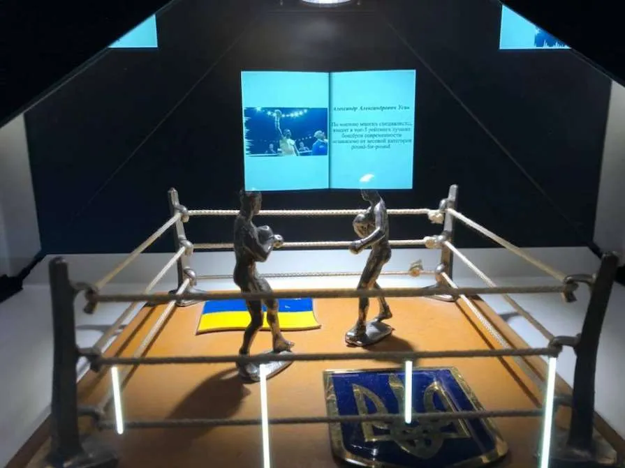 Также среди экспонатов можно увидеть боксерские шорты Вячеслава Сенченко, форму Виктора Постола с чемпионского боя против Теренса Кроуфорда, амуницию Алины Шатерниковой, различные трофеи Михаила Завьялова и многое другое.