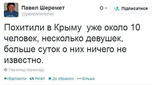 По словам журналиста Павла Шеремета, в Крыму похитили уже около десятка человек, среди них - девушки, о которых уже более суток ничего не известно.