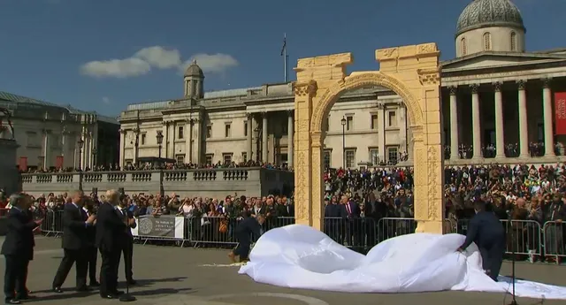 В Лондоне она простоит три дня, а затем ее перевезут в Нью-Йорк и Дубай. В следующем же году копию отвезут в Пальмиру и установят рядом с разрушенным оригиналом.
