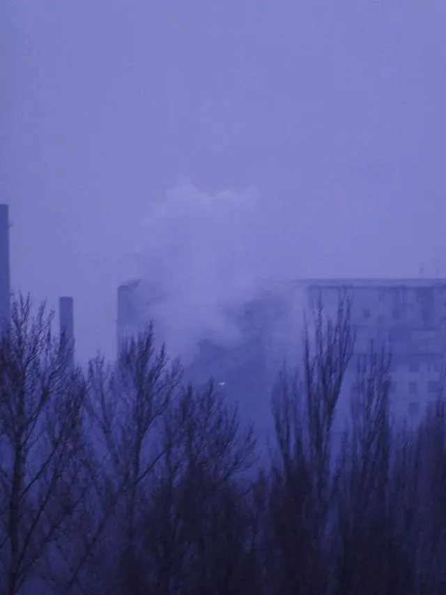 На фото, сделанных из района города Зеленый, видно шахту Ленина, с которой поднимается высокий столб дыма.