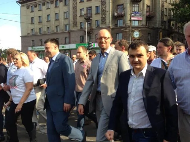 В пресс-службе "Батькивщины" информируют, что в акции принимают участие народные депутаты, в частности, Александра Кужель, Александр Бригинец, Роман Забзалюк, Сергей Фаермарк. Также во главе колонны - председатель Николаевского "Фронта змин" Вадим Мериков и единый кандидат от оппозиции на парламентских выборах-2012 в 132-м округе Аркадий Корнацкий.