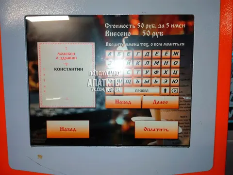 Сегодня заходили в один из павильонов нашего города. И пока стояли в очереди, взгляд упал на терминал оплаты. Ну, терминал как терминал. Но справа в верхнем углу красуется значок. Подошли ближе и были в легком шоке. Значит теперь в данном терминале я могу поставить свечку за здравие и упокой и заказать молитву,