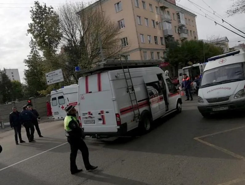По информации российских СМИ, троллейбус въехал в людей, которые на остановке выходили из маршрутки.