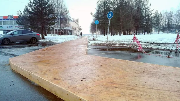 В администрации города заявили, что паркет выполняет не только декоративную функцию, но и "поможет избежать прогулок по лужам".