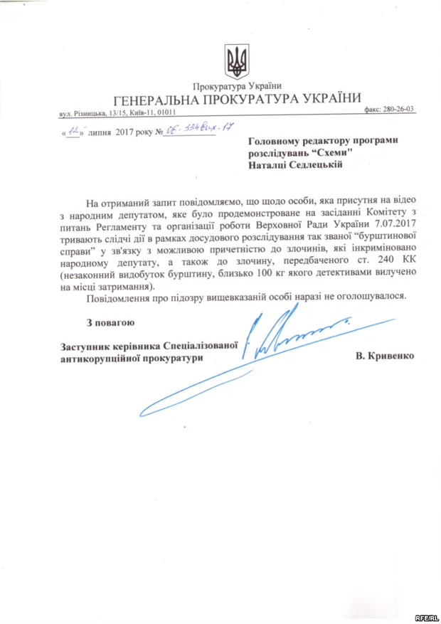 Директор Национального антикоррупционного бюро Артем Сытник 20 июня заявил, что генпрокурору направили документы на снятие неприкосновенности с народных депутатов Борислава Розенблата и Максима Полякова по делу о незаконной добыче янтаря.