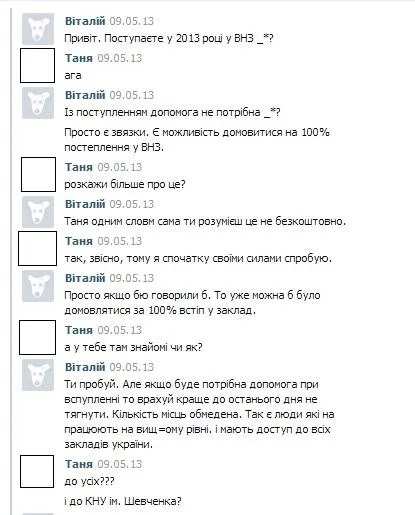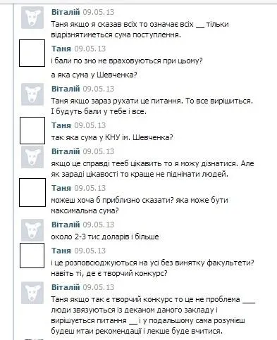 Переписка одной из нынешних абитуриенток с мошенником была опубликована на сайте Тиждень.ua.