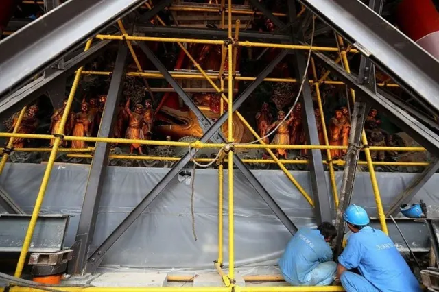 Здание Махавира было построено в 1882 году. Ежегодно его посещают более 2 миллионов человек. Его переместят вместе с тремя большими буддистскими статуями и другими памятниками культуры. Реставрацию здания начали еще в июле 2014 года, когда выяснилось, что многие дома разрушены из-за насекомых.