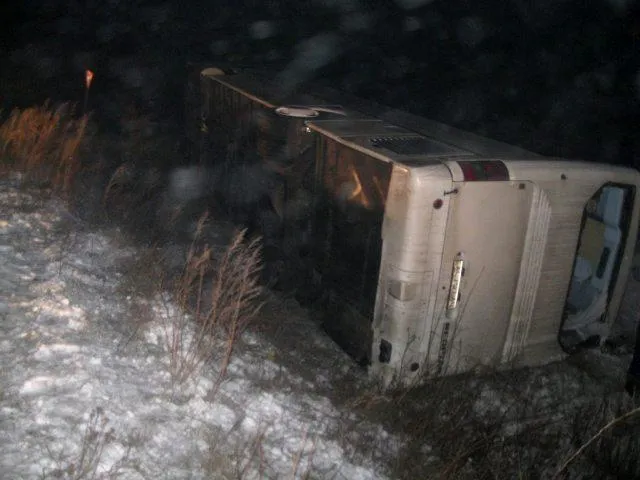 По информации, водитель автобуса Neoplan-316 не справился с управлением и съехал в кювет, где перевернулся.