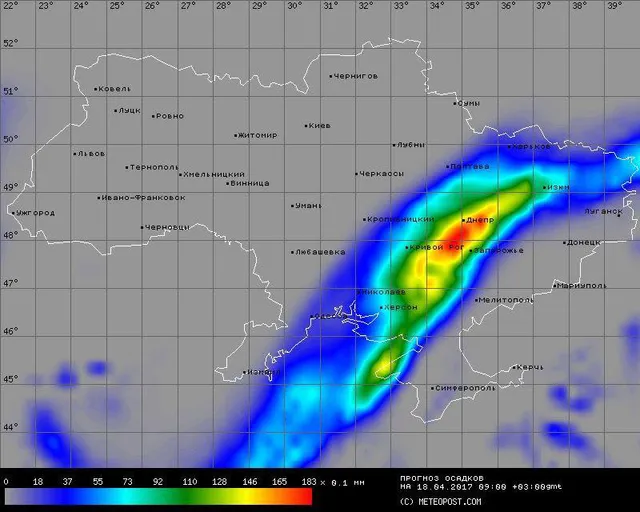Так, в Харьковской, Днепропетровской, Запорожской, Николаевской, Херсонской, Кировоградской и Черкасской областях будут идти сильные дожди. А на Харьковщине и Днепропетровщине – еще и с мокрым снегом.